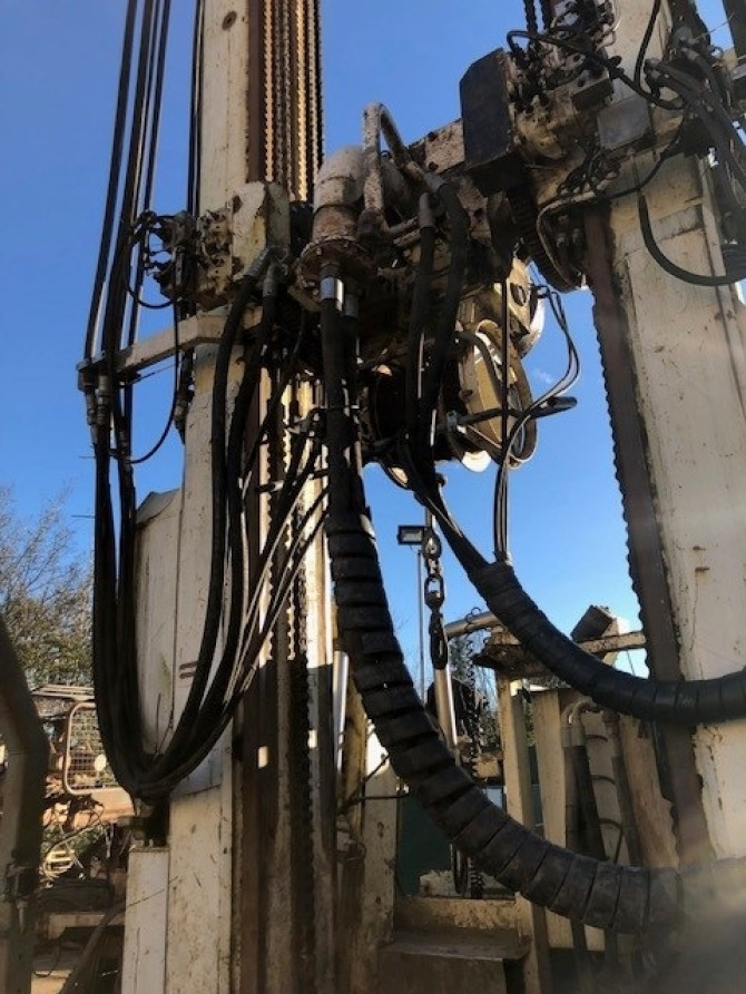 - Low bed semi-trailer mounted water well drilling rig with 12,190 working hours